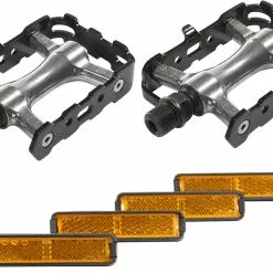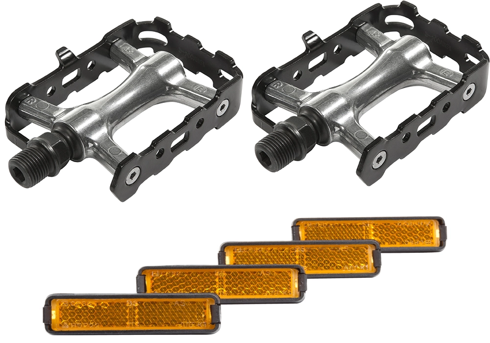 Pédales en aluminium avec axe Cr-Mo et réflecteurs.