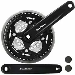 La manivelle carrée FCM513 3 x 6/7/8 vitesses de SunRace avec anneau de protection de la chaîne, offre une efficacité d’entraînement fiable et assure un rythme optimal.